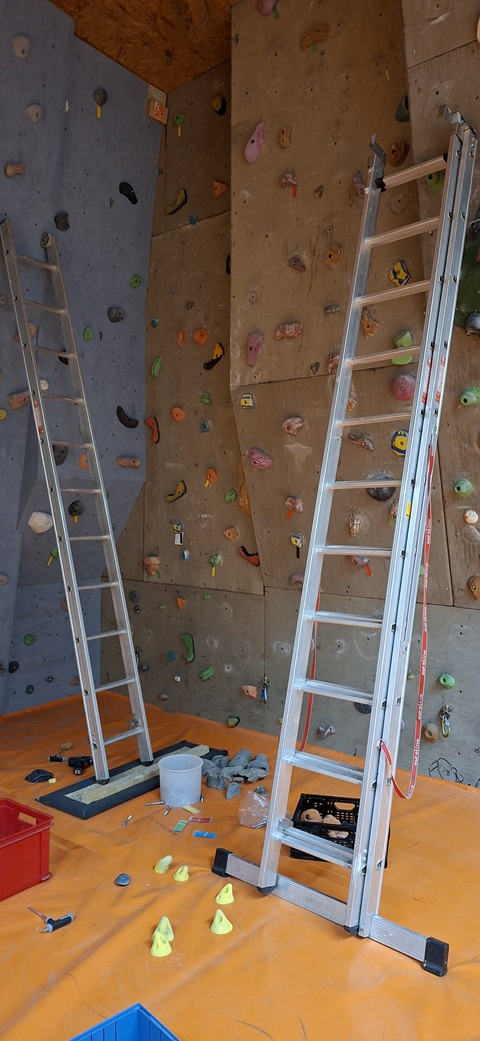 Viele Stunden, noch mehr Griffe und unzählige Schraubenumdrehungen wurden durch die fleißigen Hände der Mitglieder der „Dienstagsgruppe“ umgesetzt. Entstanden sind so tolle neue Boulder-Routen in unserem Kletteratelier. Dabei ist natürlich wieder für jedes Leistungslevel etwas dabei: Von kinderleicht über mittel bis zu schwer und autsch findet jeder Vertikalaspirant neue Herausforderungen. Auch wurde ein Teil der Wände in neue Farbe getaucht und für das raue Naturfeeling besandet.